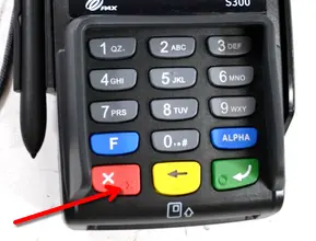 3. Тухайн ПОС терминал дээрх бодит цуцлах товчлуур дээр дарах. Ихэнх тохиолдолд энэ товчлуур улаан өнгөтэй дээрээ X гэсэн тэмдэгтэй байдаг.