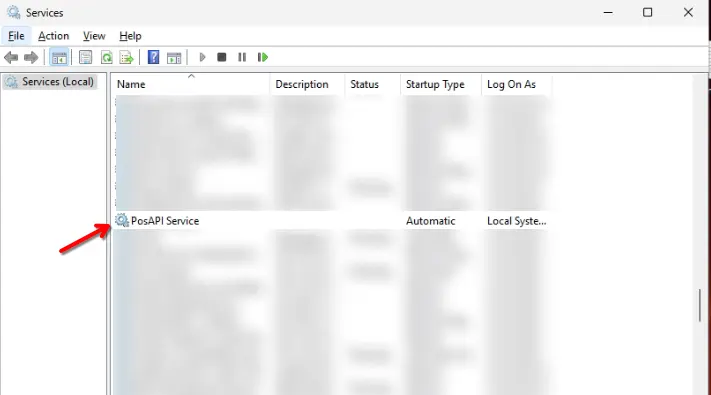 2. Шинээр нээгдсэн дэлгэцийн жагсаалтаас PosAPI Service гэсэн хэсгийг олно